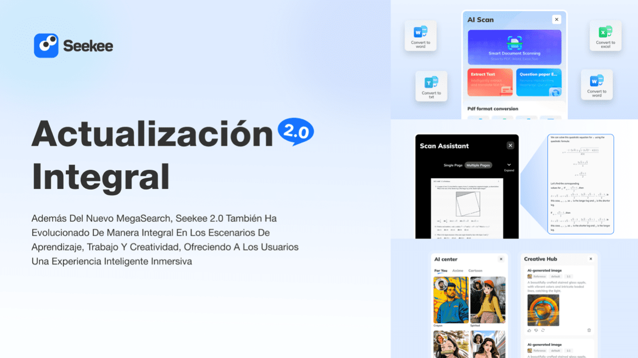 El gran lanzamiento de Seekee 2.0 llega con su función revolucionaria, MegaSearch, que realmente ofrece una “búsqueda inteligente todo en uno” y transforma por completo la forma en que los usuarios interactúan con la información. Más allá de avances contundentes en tecnología de búsqueda, Seekee 2.0 incorpora potentes funciones de IA para escenarios de aprendizaje, trabajo y entretenimiento, con el objetivo de brindar un nivel de eficiencia y comodidad sin precedentes.